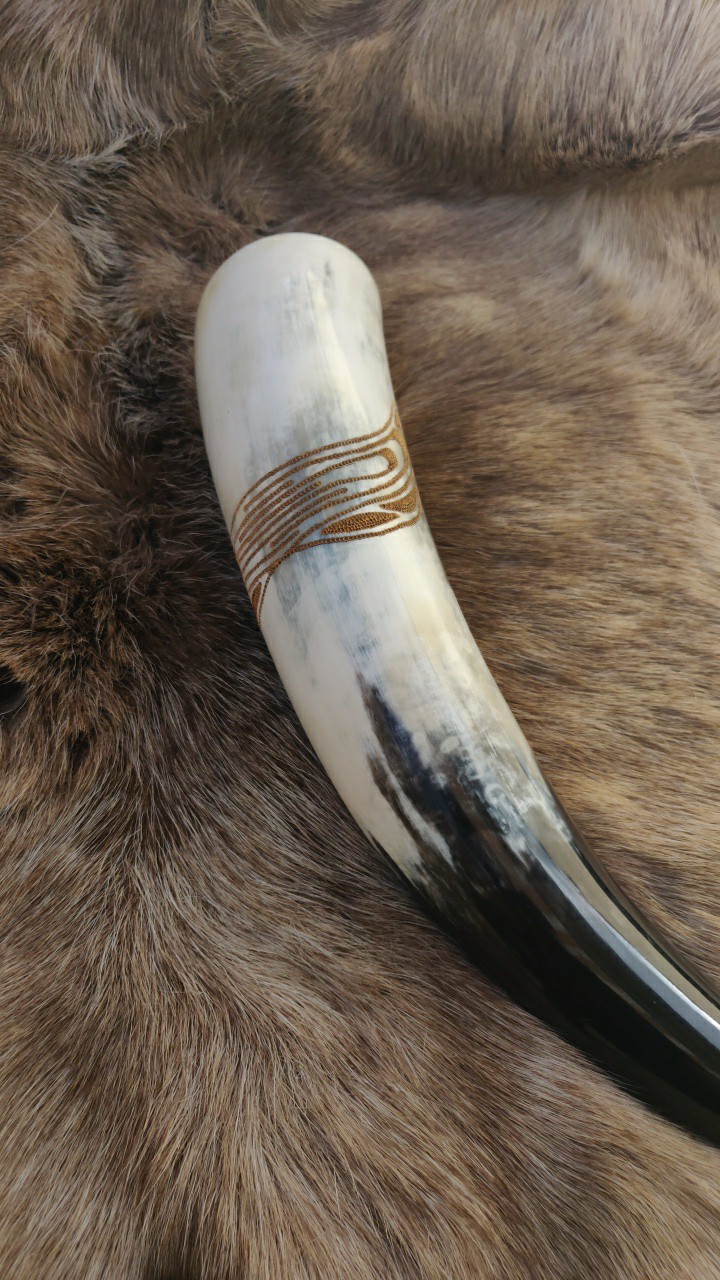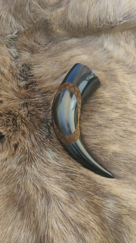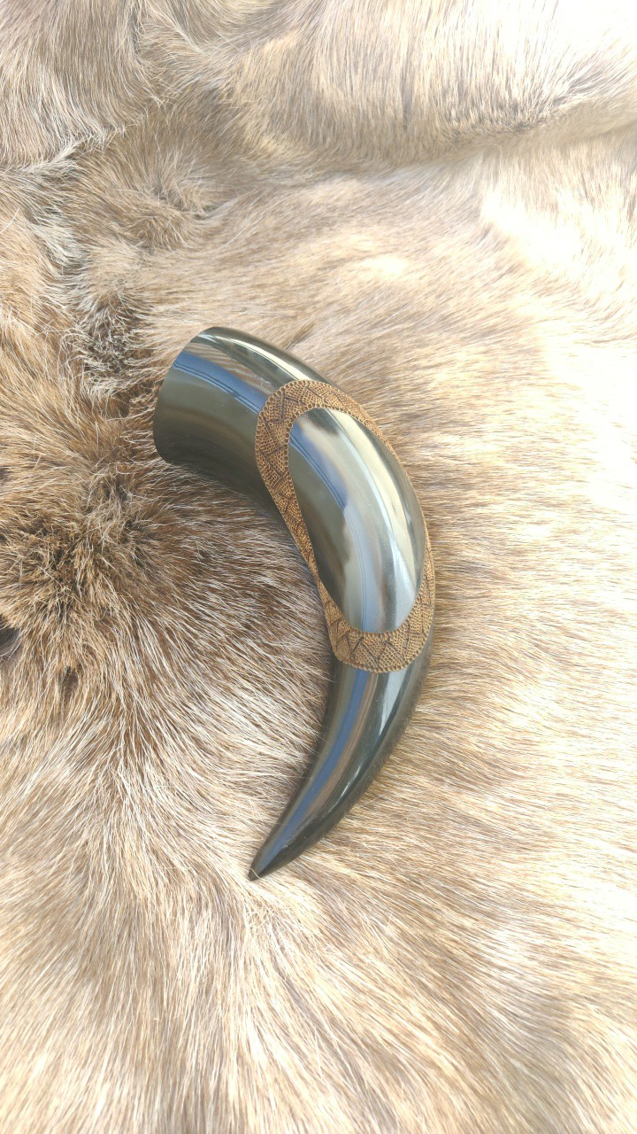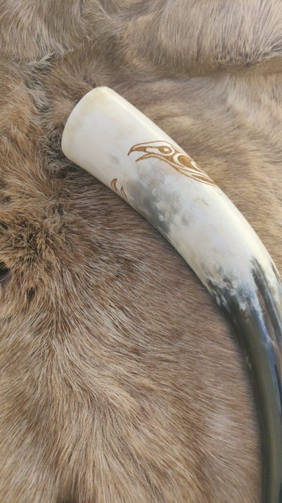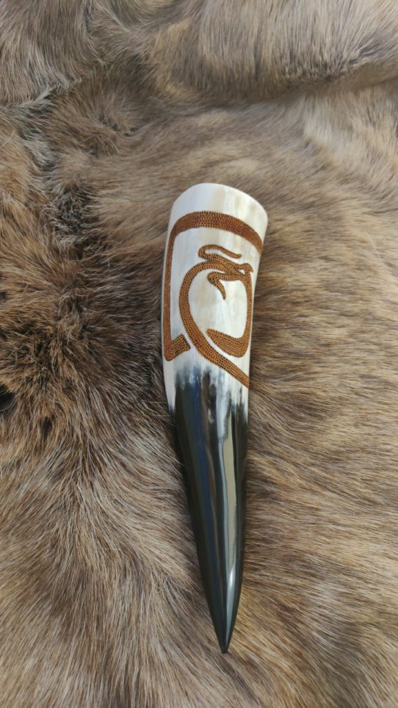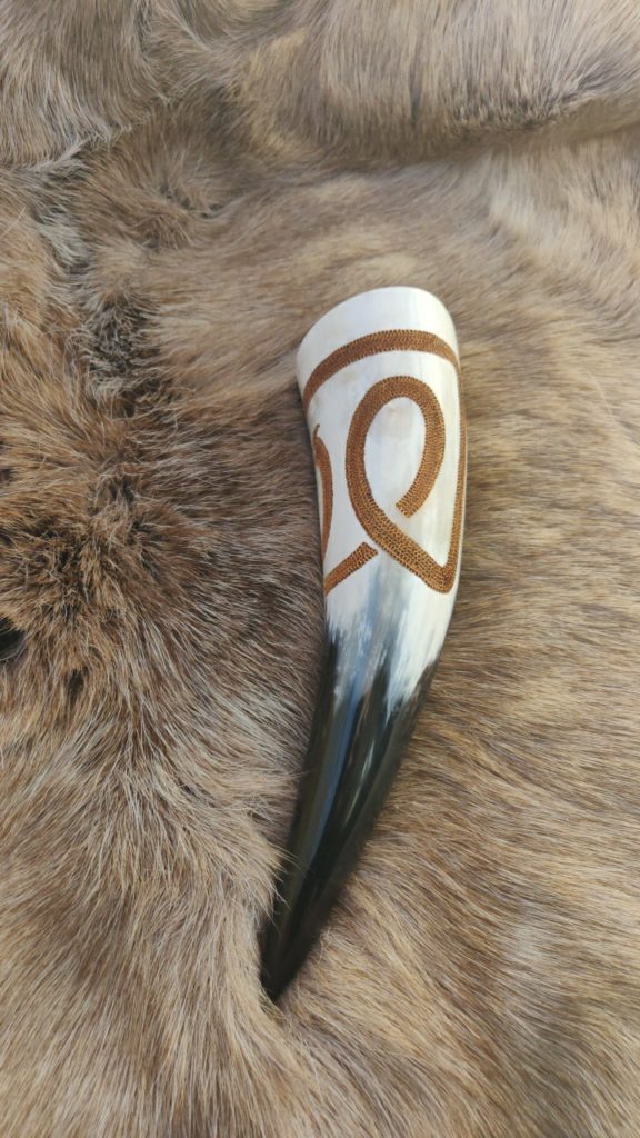 Trinkhörner habe ich bis jetzt auf zwei verschiedene Arten bearbeitet. Entweder habe ich sie gebrannt (das sind die Hörner mit den vielen braunen Punkten), oder ich habe sie graviert. Falls Sie Interesse an einem handverzierten, auf Sie zugeschnittenen Horn haben freue ich mich auf Ihre Kontaktaufnahme per Mail oder über Instagram.
