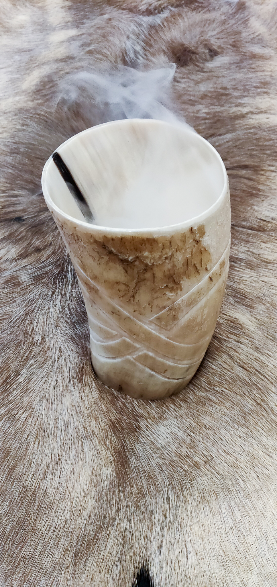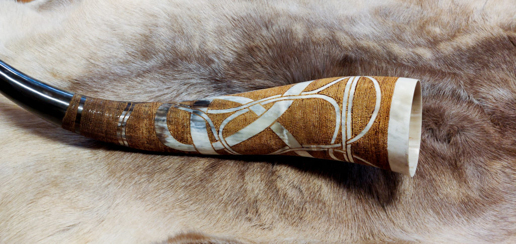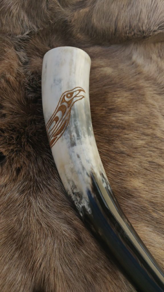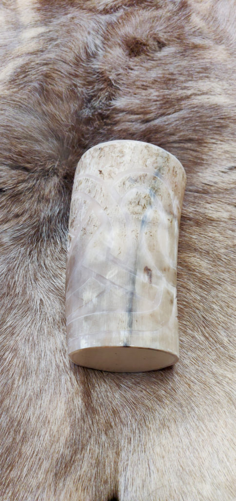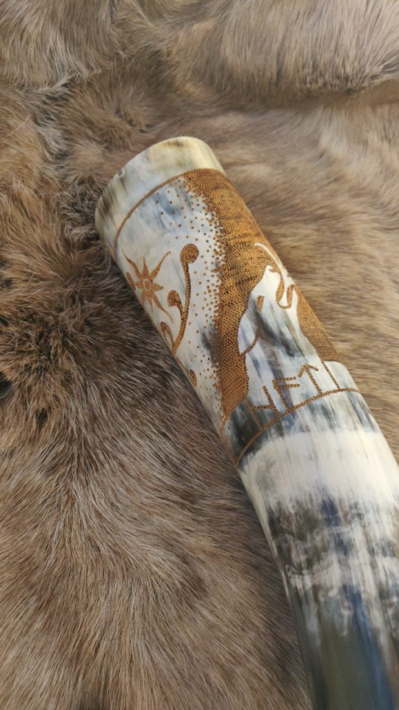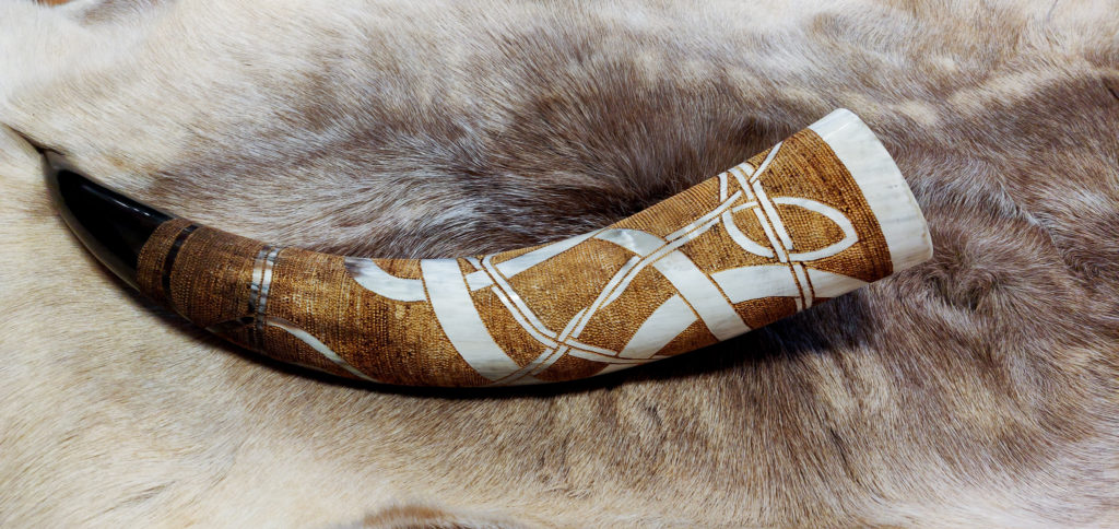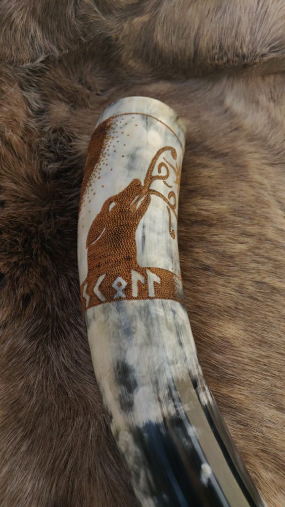 Trinkhörner habe ich bis jetzt auf zwei verschiedene Arten bearbeitet. Entweder habe ich sie gebrannt (das sind die Hörner mit den vielen braunen Punkten), oder ich habe sie graviert. Falls Sie Interesse an einem handverzierten, auf Sie zugeschnittenen Horn haben freue ich mich auf Ihre Kontaktaufnahme per Mail oder über Instagram.